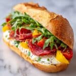 These Baked Italian Grinder Sandwiches are a deliciously layered combination of Italian deli meats, cheeses, and flavorful vegetables, all brushed with a herby seasoned butter and baked until the cheese melts perfectly. Ideal for a hearty lunch or casual dinner, they deliver the classic zing of an Italian sub with a warm, crispy twist.