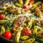 Baked Pesto Chicken is a simple yet flavorful dish perfect for busy weeknights. With just a few ingredients, you can enjoy tender chicken breasts topped with vibrant pesto and melted cheese.