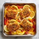 Delicious and healthy Baked Tilapia in a zesty lemon garlic butter sauce, enhanced with Italian seasoning and smoked paprika. This recipe features tender tilapia fillets baked with fresh peppers, onions, and lemon slices, perfect for a quick and flavorful meal.
