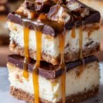 Delight your taste buds with these rich and creamy Butterfinger Caramel Cheesecake Bars, featuring a buttery graham cracker crust, a luscious cream cheese filling studded with crunchy Butterfinger pieces, a decadent caramel topping, and optional drizzled chocolate. Perfectly balanced layers create an irresistible dessert bar to satisfy any sweet craving.