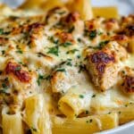 PrintCheesy Garlic Chicken Pasta Bake Recipe