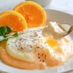 This comforting and creamy Cheesy Grits with Eggs recipe combines stone ground grits cooked in flavorful broth with a medley of creamy butter, cream cheese, and sharp cheddar. Baked with eggs nestled on top, it’s a perfect hearty breakfast or brunch dish featuring rich, cheesy goodness and tender baked eggs.