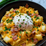 The Cheesy Potato Egg Scramble is a comforting and delicious breakfast dish that combines tender potatoes, fluffy eggs, and melty cheddar cheese. Perfect for a hearty start to your day, this scramble is easy to make and can be customized with your favorite add-ins like ham or bacon.