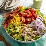 Replace the roast chicken and bacon with plant-based protein options like chickpeas, grilled tofu, or tempeh. Use a vegan mustard and ensure the dressing ingredients are all plant-based.