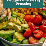 - Step 2: In a large bowl, combine the shredded chicken, chopped lettuce, corn kernels, sliced red onion, halved tomatoes, cucumbers, and avocado chunks.