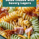 Keywords: club sandwich pasta salad, easy pasta salad, tri-color pasta salad, ranch pasta salad, picnic salad, party salad