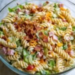 Keywords: club sandwich pasta salad, easy pasta salad, tri-color pasta salad, ranch pasta salad, picnic salad, party salad
