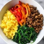 Keywords: Keto, Breakfast Bowl, Low Carb, Keto Breakfast, Sausage, Eggs, Spinach, Bell Peppers