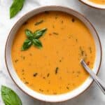 This Creamy Roasted Red Pepper Soup is a comforting, dairy-free recipe that blends tender potatoes with roasted red bell peppers and fresh basil for a smooth, flavorful soup. Perfect for a light lunch or dinner, it’s made with plant-based milk to keep it creamy without any dairy.