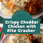 Keywords: Crispy chicken, cheddar chicken, baked chicken recipe, Ritz cracker crust, easy dinner, cheesy chicken