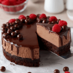 This Easy Chocolate Mousse Cake is a decadent dessert featuring a moist chocolate cake base topped with a luscious chocolate mousse layer and finished with a smooth chocolate ganache. Perfect for special occasions or any chocolate lover craving a rich, creamy treat, this cake combines the flavors of coffee-infused chocolate with light, airy mousse and fresh raspberry garnish for a beautiful and delicious presentation.