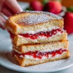 Delight in these Fried Strawberry Cheesecake Sandwiches, a decadent treat combining creamy sweetened cream cheese, fresh strawberries, and luscious strawberry jam sandwiched between brioche or challah bread slices. Dipped in an egg and milk mixture and fried to golden perfection, these sandwiches offer a crispy outside with a soft, flavorful filling – perfect for a special breakfast, brunch, or dessert.
