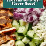 Keywords: Greek chicken bowls, air fryer chicken, tzatziki sauce, healthy Mediterranean bowl, quick chicken recipe, Greek yogurt sauce