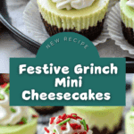 Keywords: Grinch cheesecakes, mini cheesecakes, holiday dessert, Oreo crust, green cheesecake, festive treats