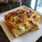 - Add Egg Mixture: Pour the egg and cream mixture evenly over the layered ingredients, ensuring everything is covered.
