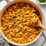 This Healthy Hamburger Helper is a delicious and nutritious one-pan meal featuring lean ground beef, tender macaroni, and a flavorful tomato-based sauce. Enhanced with aromatic spices and topped with melted cheddar cheese, it’s a hearty and comforting dish perfect for a quick weeknight dinner.