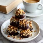 These Homemade High Protein Double Chocolate Frozen Yogurt Bites are a delicious, guilt-free snack that combines creamy Greek yogurt, peanut butter, and cocoa powder for a rich, satisfying filling. Coated in melted chocolate and topped with chopped peanuts, these bites pack 5 grams of protein each and make a perfect make-ahead snack or dessert to keep in your freezer.