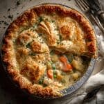 Turkey pot pie is a comforting, hearty dish perfect for using up leftover turkey. This savory pie combines tender turkey, mixed vegetables, and creamy sauce all baked inside a flaky crust for a satisfying meal.