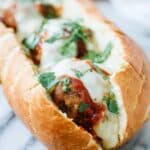 Store leftover meatball subs wrapped tightly in the refrigerator for up to 3 days. Reheat in the oven at 350˚F until warmed through to keep the bread crispy and cheese melted. For longer storage, freeze the assembled sandwiches wrapped in foil for up to 2 months and thaw before reheating.