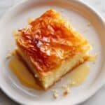 Store leftover knafeh in an airtight container in the refrigerator for up to 3 days. Reheat gently in a warm oven or microwave to restore the crispiness before serving. Keep syrup separate and drizzle over after reheating.