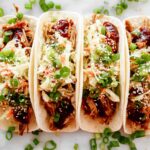These Korean BBQ Tacos with Quick Kimchi combine tender slow-cooked pulled pork seasoned with a flavorful blend of soy sauce, garlic, and spices, then finished under the broiler for a crisp texture. Served with a tangy, spicy quick kimchi and traditional toppings on warm corn tortillas, this fusion recipe balances sweet, savory, and spicy elements for a delicious handheld feast.