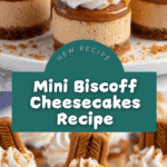 Keywords: Biscoff cheesecake, no bake cheesecake, mini cheesecakes, Biscoff cookie butter dessert, easy cheesecake recipe