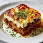 Keywords: Pastitsio, Greek lasagna, baked pasta, ground beef, béchamel sauce, comfort food