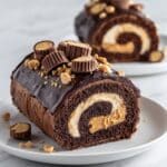 This Peanut Butter Cup Chocolate Roll Cake is a delightful blend of rich chocolate and creamy peanut butter, perfect for any celebration or sweet craving. Light, fluffy, and rolled with a smooth peanut butter filling, it’s topped with chocolate ganache and mini peanut butter cups for an irresistible finish.