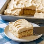 11. Frost the Cake: Spread the prepared peanut butter frosting evenly over the cooled sheet cake. Slice and serve.