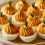 Brighten up your appetizer spread with these charming Pumpkin Patch Deviled Eggs. They’re a fun, festive twist on the classic deviled egg, perfect for fall gatherings or Halloween parties.