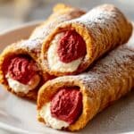 Red Velvet Cannoli combines the rich flavors of classic red velvet cake with the crisp, creamy delight of traditional Italian cannoli. These festive treats feature cocoa-infused shells dyed a vibrant red and filled with smooth, sweetened cream cheese filling. Perfect for special occasions or a fun twist on a beloved dessert!