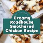 Roadhouse Smothered Chicken is a hearty and comforting dish featuring tender chicken breasts topped with sautéed onions, mushrooms, and melted Monterey Jack cheese. This home-style recipe is perfect for a cozy dinner that’s full of rich flavors and simple ingredients.