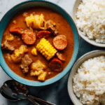 Sancocho is a hearty Caribbean stew made with a variety of root vegetables, plantains, meats, and spices simmered together to create a rich, comforting dish full of depth and flavor. Featuring ingredients like yuca, yautia, calabaza squash, chicken, pork, and chorizo, this traditional recipe offers a thick, porridge-like consistency perfect for a satisfying meal served with bread or rice.