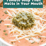 5. Serve and Garnish: Serve the soup hot, topped with a dollop of pesto, croutons for crunch, and a sprinkle of Parmesan cheese for extra richness.