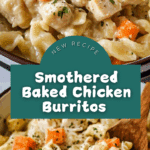 This Smothered Baked Chicken Burritos recipe features tender shredded chicken, rice, beans, corn, and cheese wrapped in warm flour tortillas, then smothered with a flavorful sauce and baked to perfection. It’s a comforting and satisfying meal perfect for a family dinner or casual gathering, combining Tex-Mex flavors with a creamy, cheesy finish.