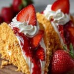 These Strawberry Crunch Cheesecake Tacos are a delightful twist on a classic dessert. Creamy cheesecake filling meets crunchy graham cracker shells and fresh strawberries for a fresh, fun treat that’s perfect for any occasion.