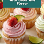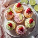 Delight in these vibrant Strawberry Mango Margarita Cupcakes, bursting with fruity flavors and a hint of tequila. Perfectly moist and marbled with strawberry and mango swirls, these cupcakes are topped with a luscious strawberry-mango buttercream frosting and garnished with lime wedges and fresh strawberries for a refreshing tropical twist.